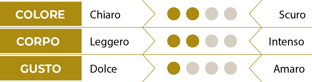 Birra artigianale caratterizzata dall'aggiunta di mosto di Pecorello. Dal colore giallo oro, presenta una schiuma fine e compatta. Emergono al naso delicate note di agrumi e frutta a polpa gialla. Corpo avvolgente e complesso in cui le note fruttate si fondono con una piacevole nota alcolica. Il finale è sapido e mediamente persistente.