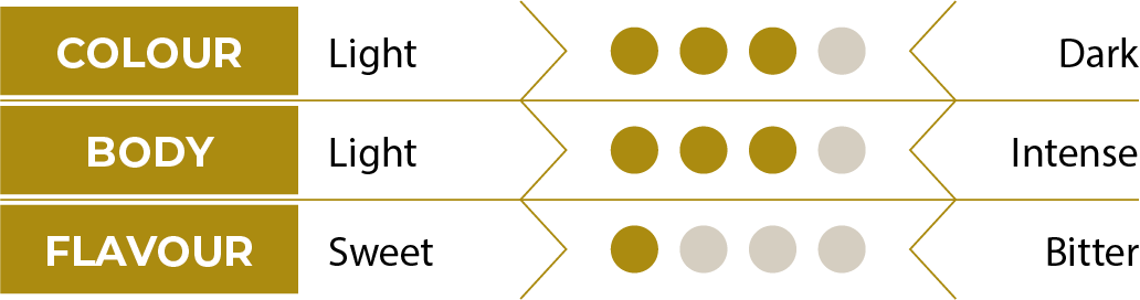 Craft beer characterized by the addition of Magliocco Canino must. With a deep amber color, it has a fine and moderately persistent foam. Notes of red fruit and dried fruit emerge on the nose with floral scents such as rose and violet. Medium and complex body in which the hints of red fruit blend with a pleasant acidity. Good fizz and persistent finish.